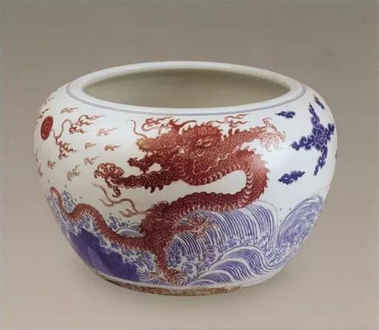 故宮博物院藏青花釉里紅雙龍戲珠紋缸