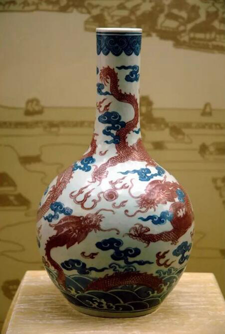 頤和園藏咸豐青花釉里紅云龍紋天球瓶