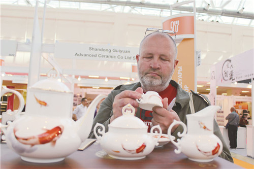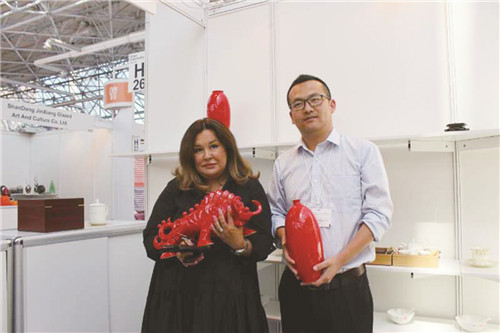 開幕式當天,記者在現(xiàn)場看到,淄博陶琉展區(qū)人頭攢動,莫斯科市民、經(jīng)銷商在這里流連忘返,對淄博陶瓷的美輪美奐不時發(fā)出驚嘆。據(jù)了解,在山東省陶瓷協(xié)會、淄博市陶瓷行業(yè)協(xié)會的組織下,華光陶瓷、硅元瓷器、泰山瓷業(yè)都是連續(xù)三次參加中國消費品(俄羅斯)品牌展,在2016、2017參展的基礎(chǔ)上,2018年展會他們都針對俄羅斯市場做了充分的準備,從造型設(shè)計、色彩選擇、消費習慣等方面,推出了一批陶琉精品,受到俄羅斯市民和經(jīng)銷商的青睞。當天上午,一位俄羅斯女士就像熟悉的老朋友徑直走進淄博陶琉展區(qū),當即選購了華光陶瓷出品的一套富貴牡丹餐具,一套流金歲月餐具。付款打包,沒用10分鐘。據(jù)了解,這位女士在去年的展會上,就對華光陶瓷愛不釋手,曾選購過一套牡丹餐具。今年聽說華光陶瓷來參展,她又第一時間趕來選購自己心儀的產(chǎn)品。華光陶瓷設(shè)計研發(fā)的福魚賀歲咖啡具也備受俄羅斯消費者歡迎,不到一上午的時間就已售罄。硅元瓷器此次展會推出了包括日用瓷、藝術(shù)瓷共二十幾個品類,國瓷國禮國范,中國元素中國特色,充分展現(xiàn)了“淄博陶瓷當代國窯”風采,深受俄羅斯消費者的喜愛。莫斯科紅寶石展覽中心副總經(jīng)理阿麗娜女士一眼就相中了硅元瓷器的產(chǎn)品,她一次就購進了“紅牛”雕塑和“怡然”花瓶兩件。泰山瓷業(yè)此次展會帶來了一批擁有國家發(fā)明專利的水晶瓷、水晶骨瓷、水晶玉瓷陶瓷精品,晶瑩剔透,溫潤如玉,在展會上一亮相,就引來無數(shù)贊賞的目光。剛剛斬獲2018中國旅游商品大賽金獎的金祥琉璃是第一次參加中國消費品(俄羅斯)品牌展,沒想到,消費者的接受度很高,他們對琉璃的歷史、制作工藝充滿了好奇。此次嘗試,讓金祥琉璃對開拓俄羅斯市場更加充滿了信心。
