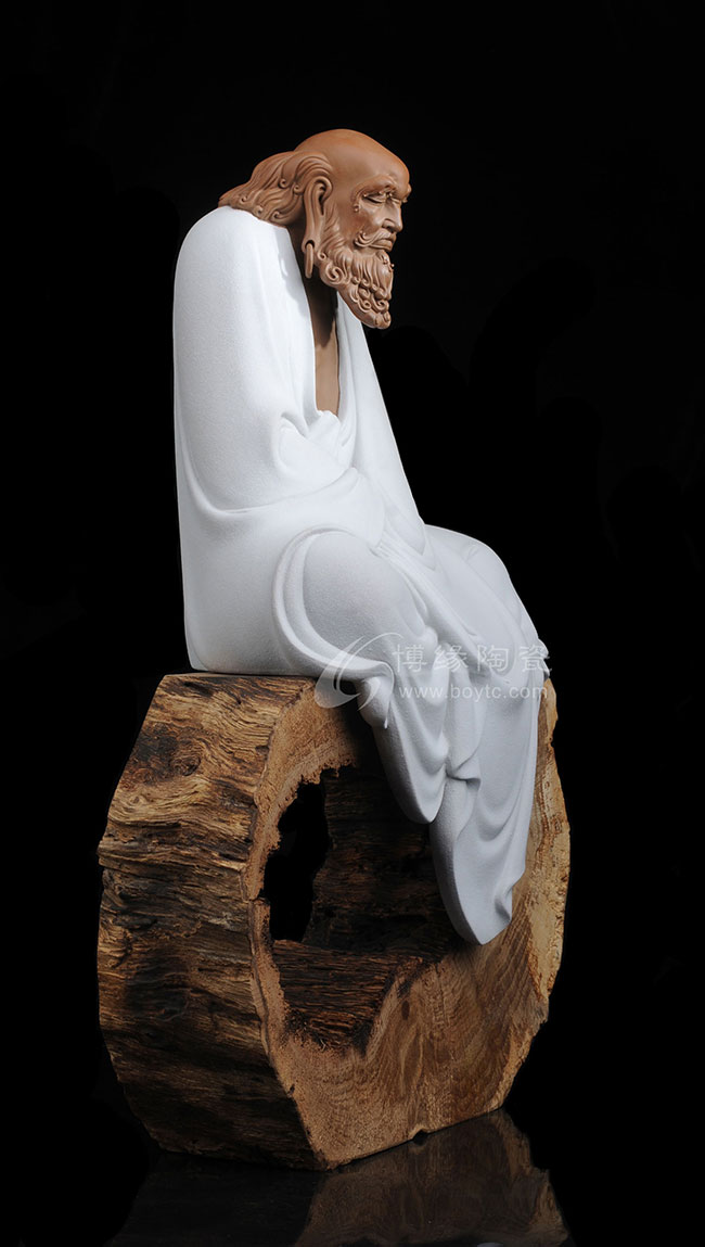 所塑作品神情嫻雅平靜,人物性格鮮明,造型優(yōu)美,神態(tài)逼真,風(fēng)格洗練,經(jīng)高溫1000多度燒制,整尊造像活靈活現(xiàn),同時作品還結(jié)合了木根雕工藝,更具美感,是一件上乘之品,適合作為會所、家居等擺件。