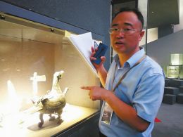 臨汾博物館館長狄跟飛介紹文物如數家珍。