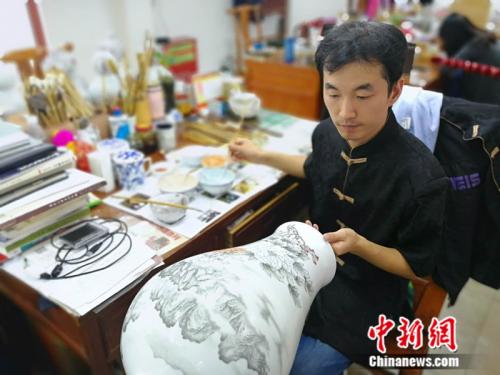 1987年出生的山東小伙徐立賓是京彩瓷工藝傳承的新生力量。