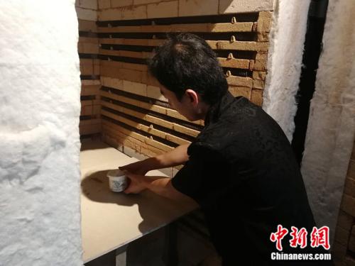 徐立賓將作品放入窯內(nèi)燒制。