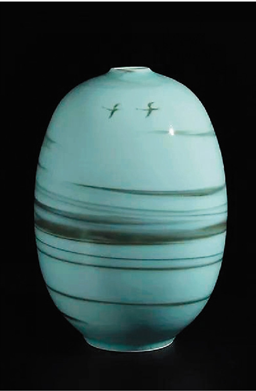 藝術(shù)家山水的創(chuàng)作并不是去描繪真山真水,而是對自然的一種感悟。近年來盧偉孫的創(chuàng)作從造型上有所變化,方的形式比較多,裝飾手法上也比較隨性,主要利用青釉在高溫流動中產(chǎn)生的半透明的語言去描繪山水自然的美。創(chuàng)作也跳出傳統(tǒng)制瓷的框架。方型器物系列塊面性強,線條挺拔有力,給人感覺有山石的堅硬、凝重,水的清澈、靈動的意韻,有自然之生機,得陽剛之美。
