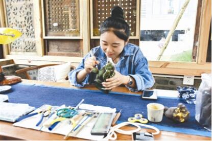 今年6月,廖莎從四川商務(wù)職業(yè)學(xué)院環(huán)境藝術(shù)設(shè)計(jì)專業(yè)畢業(yè)之后,就來到幸福公社開始“創(chuàng)客”生涯。廖莎坦言,一方面是因?yàn)樽约旱募揖妥≡谇嘞兼?zhèn),對這片土地有著深厚的情感;另一方面,則是看中了這里的創(chuàng)新創(chuàng)業(yè)環(huán)境。“今年4月,我在朋友的邀請下來這里玩了一次,一下子就被幸福公社的氛圍、環(huán)境吸引住了,這里不像大城市那樣喧囂,十分寧靜,我可以做自己喜歡的設(shè)計(jì)和手工。”