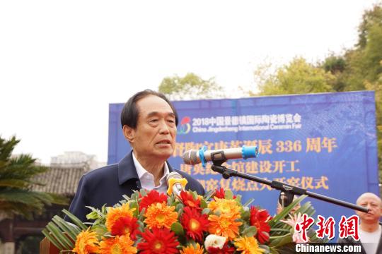 歷史學(xué)家閻崇年在“唐英紀(jì)念館”開(kāi)工儀式現(xiàn)場(chǎng)致辭。