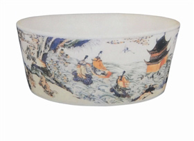 清代,大缸恢復(fù)生產(chǎn),尺寸之巨,不亞于明朝嘉萬時(shí)期;制作之精,則比前朝有過之而無不及。圖案有畫“惟皇帝才配得上享用的五爪龍紋”,亦有畫供民間大戶人家使用的四爪龍紋或山水、人物及花鳥圖等。中、小型魚缸尤為多見,尺碼不等,規(guī)格齊全。品種有青花、五彩、釉里紅、粉彩及各種顏色釉瓷。說明景德鎮(zhèn)窯瓷缸,在清代文人士大夫階層中已十分盛行。
