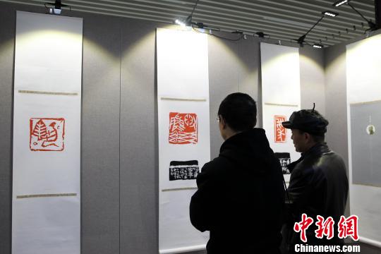 “絲路遺風(fēng)”黃土陶瓷印刻作品展4日在青海西寧開幕,篆刻者根據(jù)從西部原始巖畫及彩陶中提取的文化符號,創(chuàng)作的篆刻作品,與大眾見面。