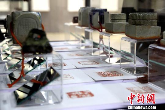 圖為陶瓷印原創(chuàng)作品陳展在青海省西寧市城西區(qū)文化藝術(shù)中心。