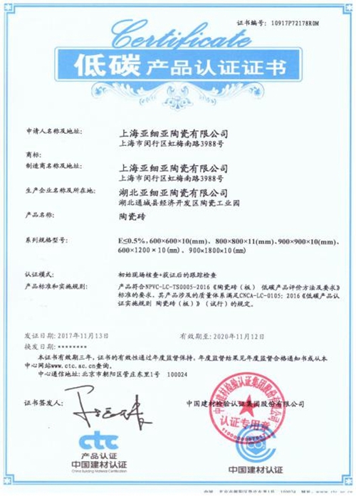 為向低碳生產(chǎn)模式轉(zhuǎn)變,亞細(xì)亞瓷磚在環(huán)保方面**上億元,研發(fā)出8個(gè)專利生產(chǎn)技術(shù),成為行業(yè)內(nèi)唯 一個(gè)將廢棄排放標(biāo)準(zhǔn)降低至國(guó)標(biāo)50%以下的企業(yè)。亞細(xì)亞瓷磚能獲得中國(guó)環(huán)境標(biāo)志低碳產(chǎn)品認(rèn)證,成為綠色企業(yè),可謂名副其實(shí)。