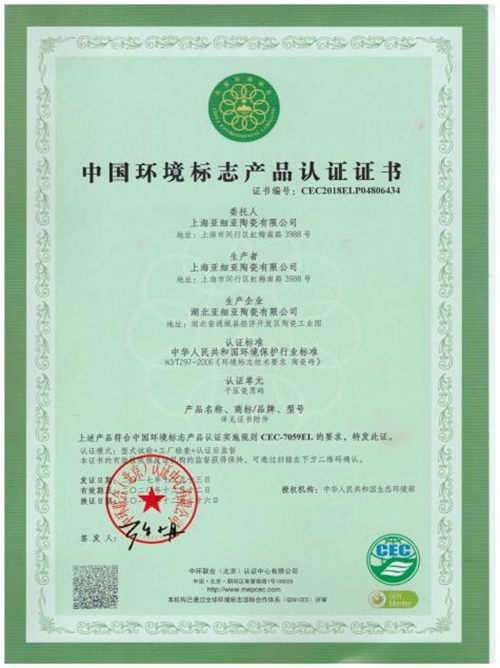 中國(guó)環(huán)境標(biāo)志,是目前國(guó)內(nèi)市場(chǎng)公認(rèn)的綠色環(huán)保產(chǎn)品證書(shū),因其環(huán)保要求相當(dāng)高,也被稱為國(guó)內(nèi)最難通過(guò)的環(huán)保證書(shū)。中國(guó)環(huán)境標(biāo)志已與澳大利亞、韓國(guó)、日本、新西蘭、德國(guó)、泰國(guó)、北歐等國(guó)家環(huán)境標(biāo)志機(jī)構(gòu)簽署了互認(rèn)合作和代理協(xié)議,實(shí)現(xiàn)國(guó)際互認(rèn)。榮獲此譽(yù)也彰顯了亞細(xì)亞瓷磚在中國(guó)乃至全球綠色制造的領(lǐng) 先地位。