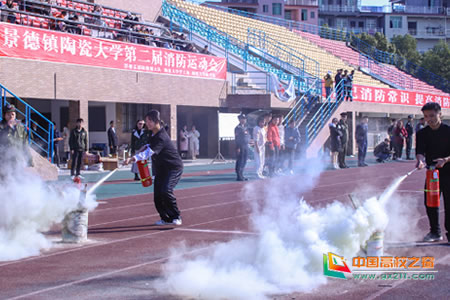 一個個趣味運動項目將消防知識融入其中,讓運動員和觀眾從樂趣中獲得實用知識。“經(jīng)過賽前的刻苦訓練,我對消防器材的了解從一竅不通到現(xiàn)在能夠熟練使用滅火器,這段經(jīng)歷是很有意義的。”2019級會計專業(yè)的龔崢回想道。各學工組織積極配合訓練,景德鎮(zhèn)陶瓷大學的消防退伍兵也對比賽選手進行了認真指導訓練。