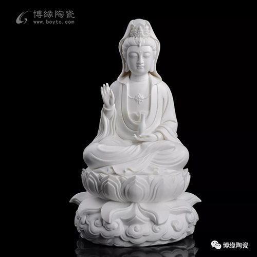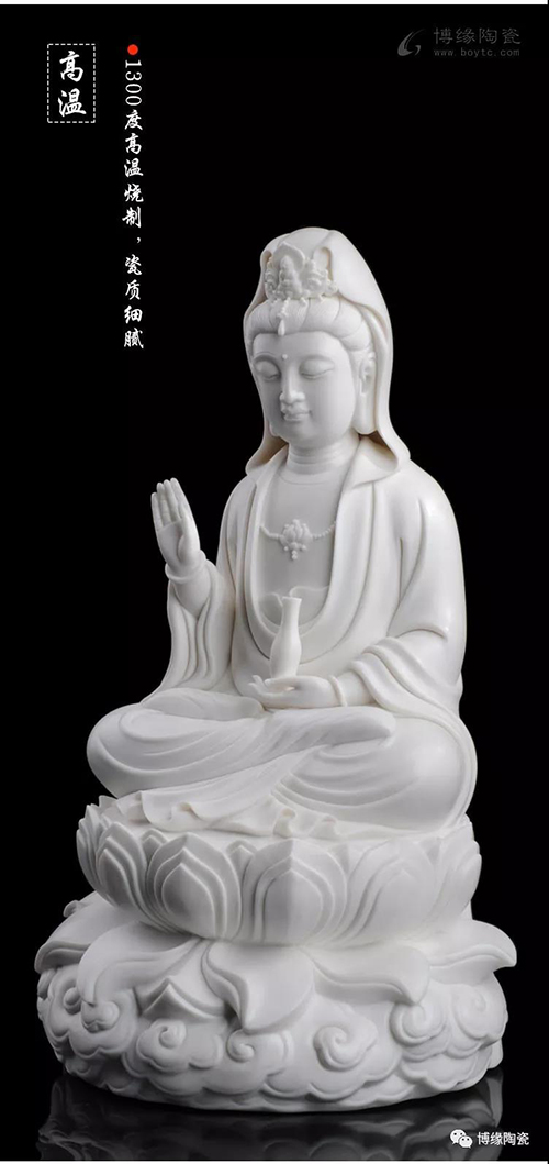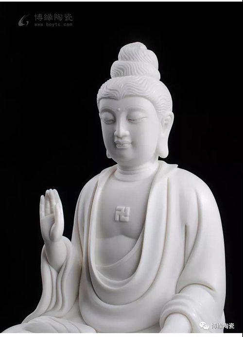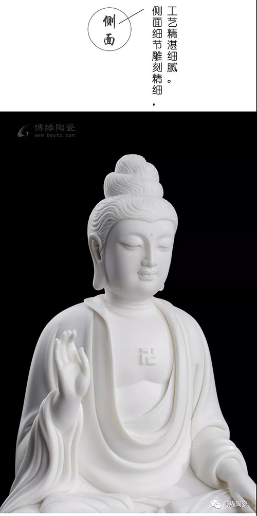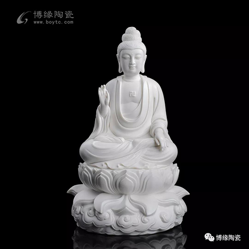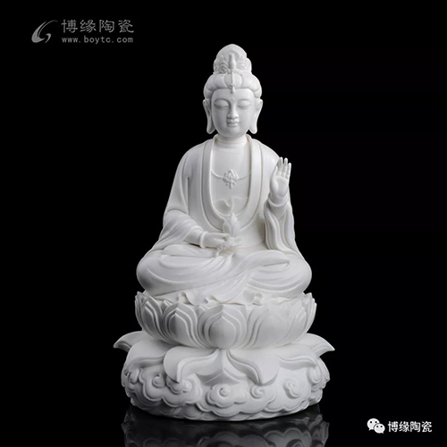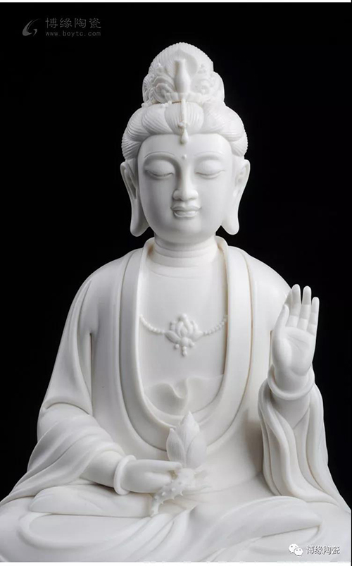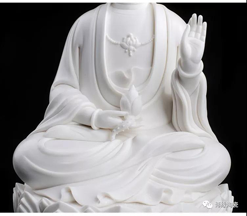 德化瓷器,以白瓷為最;白瓷之中,又以佛像為最。德化白瓷所塑佛像有性格鮮明、造型優(yōu)美、神態(tài)逼真、風(fēng)格洗練的特點。有一種單純的雕塑美和原材料的質(zhì)地美,最能體現(xiàn)佛教樸素、平和的思想。