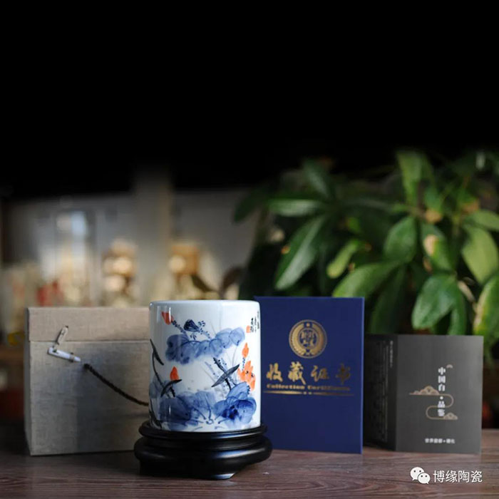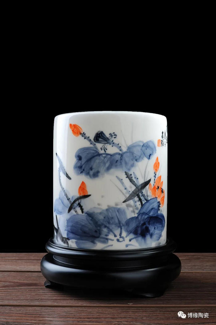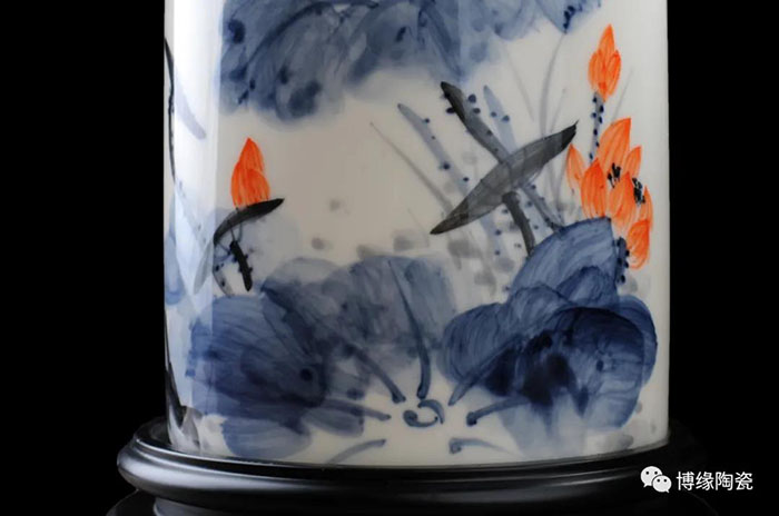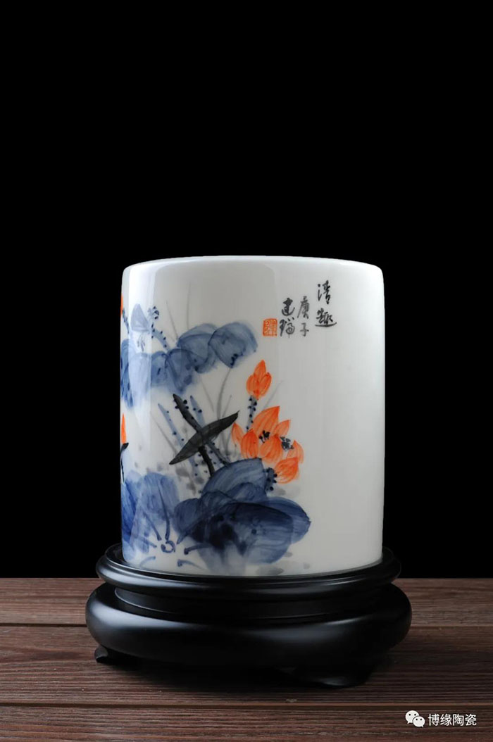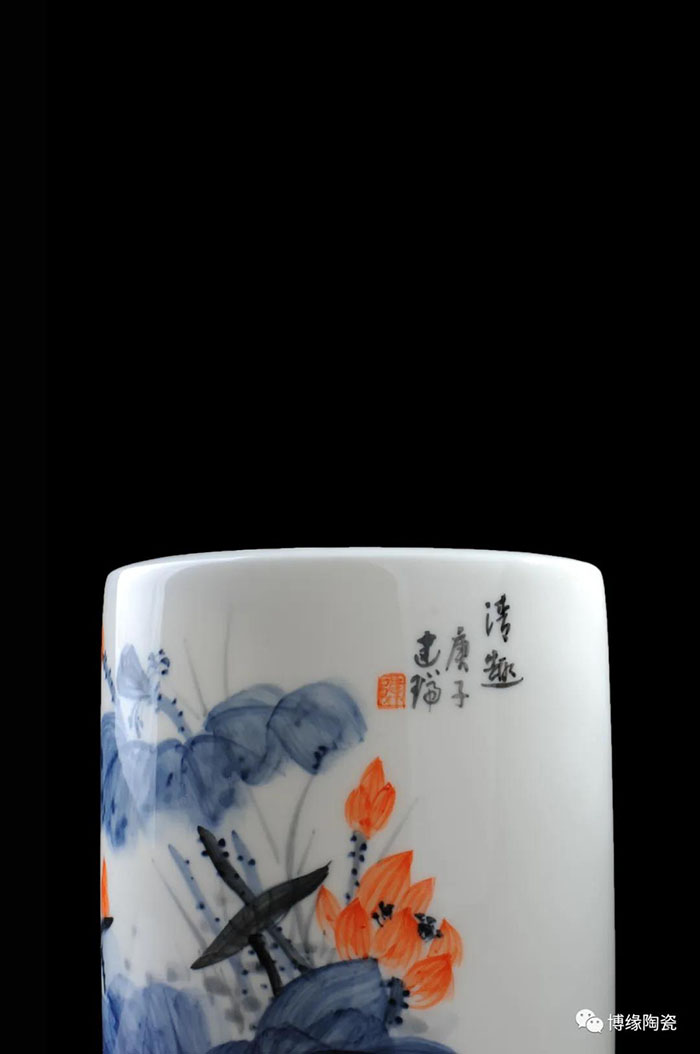 筆筒的制作除了材質(zhì)的不同,繪畫技法也得到了充分的體現(xiàn)。二十世紀(jì)初期,江西景德鎮(zhèn)的瓷畫藝人對傳統(tǒng)粉彩畫法加以改造,用粉彩原料在瓷器上繪制中國畫,形成了以“珠山八友”為代表的瓷繪名家流派
