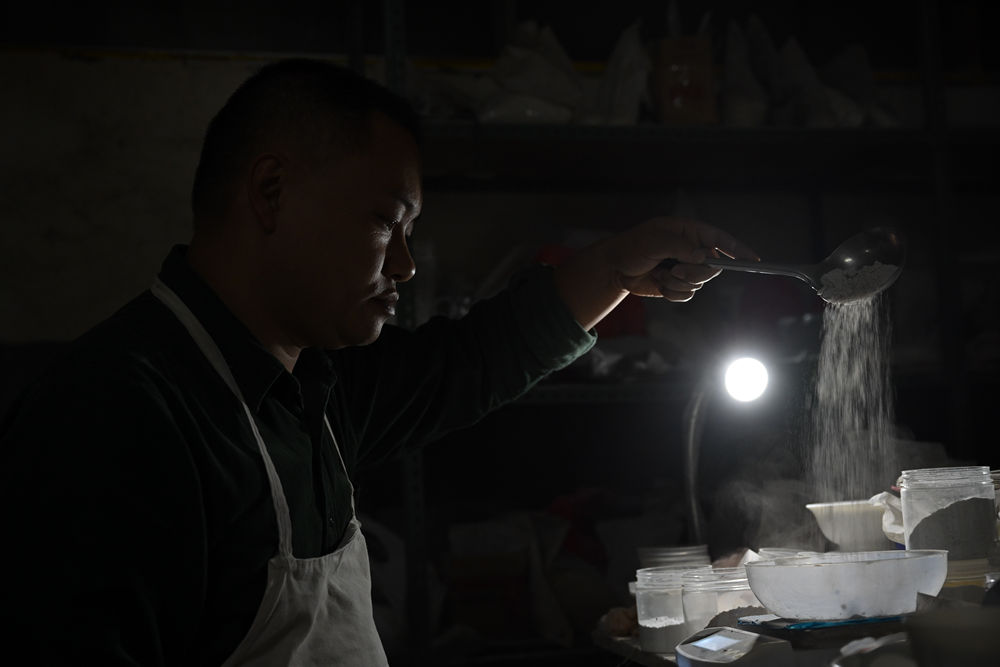 10月20日,徐金寶在自己的實驗室里調(diào)配瓷土。