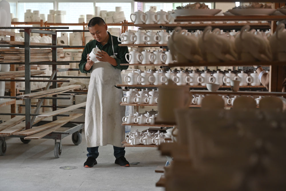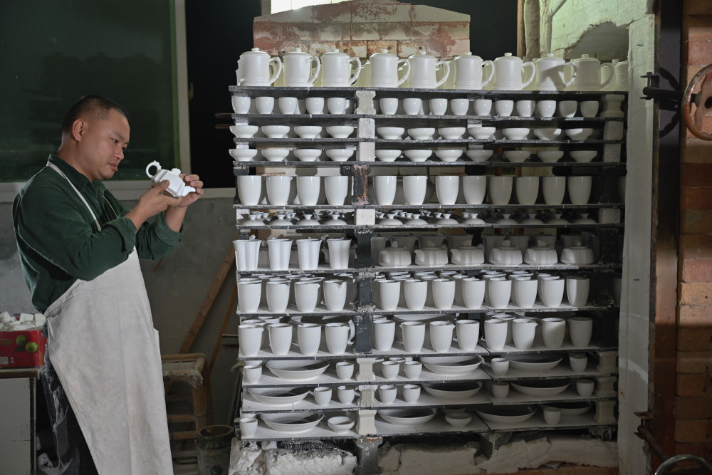 10月21日,徐金寶檢查一批白瓷茶具。