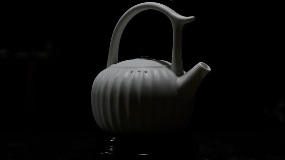 這是徐金寶研發(fā)的可用明火和電爐加熱的白瓷水壺(10月20日攝)。