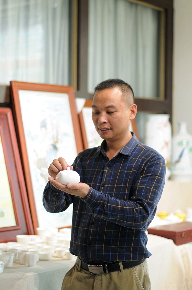 陳忠恩自小就受到千年瓷都德化的陶瓷文化熏陶,并喜歡上這門 藝術(shù)。學(xué)業(yè)修成后便回到家鄉(xiāng),深入大師工作室,從點(diǎn)點(diǎn)滴滴學(xué)起。 經(jīng)過10多年的拜師學(xué)藝,熟練掌握制壺各個(gè)工序,從瓷泥加工、手拉 胚、塑樣、燒制無不精通。先后還深入宜興等地學(xué)習(xí)交流制壺技藝, 經(jīng)過多年的設(shè)計(jì)創(chuàng)作,創(chuàng)作出幾十款玉脂瓷壺、玉瓷杯作品,所創(chuàng)作 品造型精美、瓷質(zhì)溫潤(rùn)潔白如玉,作品曾多次獲得各評(píng)比金獎(jiǎng),作品《心經(jīng)壺》榮獲2019年中國(guó)國(guó)際北京陶瓷藝術(shù)名家作品展金獎(jiǎng),深受客商及收藏家喜愛,廣受好評(píng)。