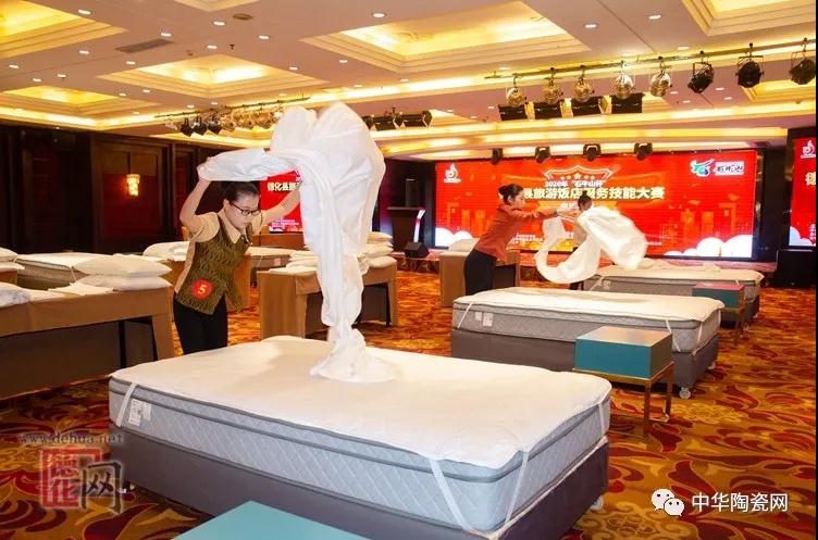 在中式鋪床實(shí)操現(xiàn)場(chǎng),只見(jiàn)選手們認(rèn)真觀察四個(gè)床角、輕輕拿捏著床單,開(kāi)
