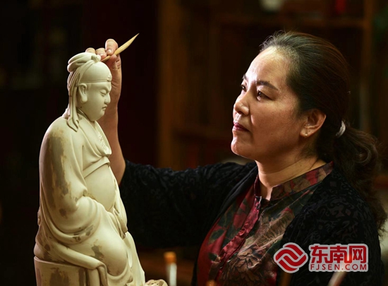 山東女子朱芳芳扎根德化三十年來(lái),她始終不改初心,熱愛(ài)德化陶瓷,經(jīng)過(guò)不懈的探索、鉆研、創(chuàng)作,她取得了國(guó)家一級(jí)技師、高級(jí)工藝美術(shù)師職業(yè)資格,獲評(píng)福建省工藝美術(shù)大師、福建省陶瓷藝術(shù)大師、閩派雕刻藝術(shù)大師、泉州市工藝美術(shù)大師。
