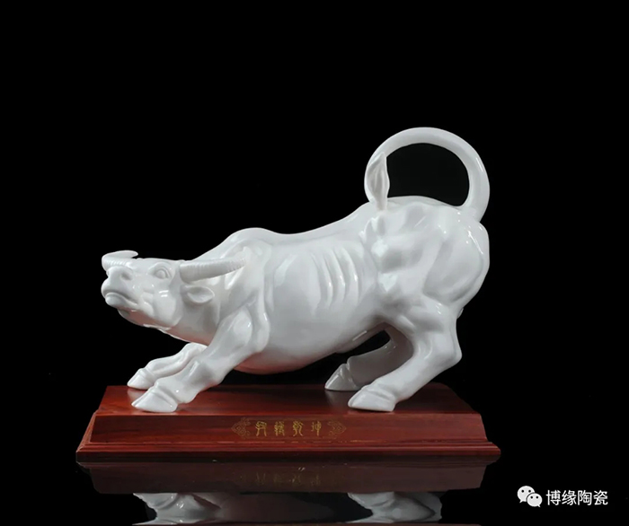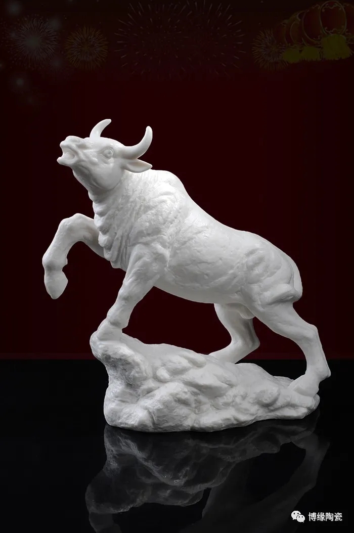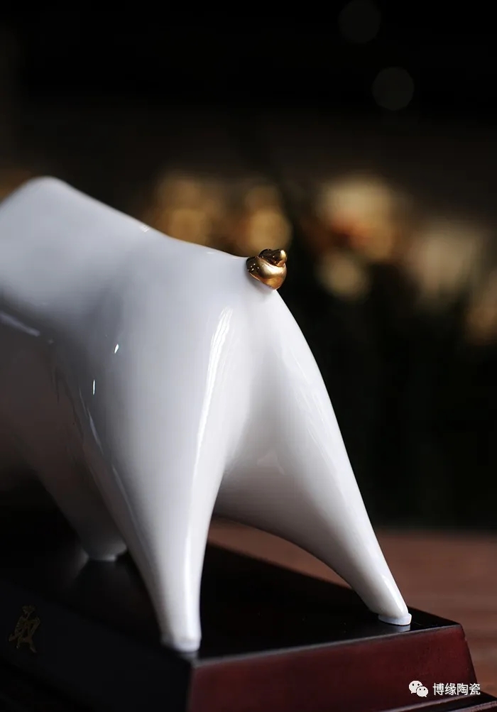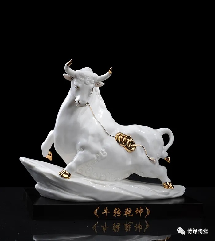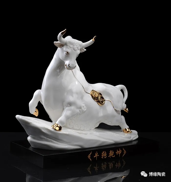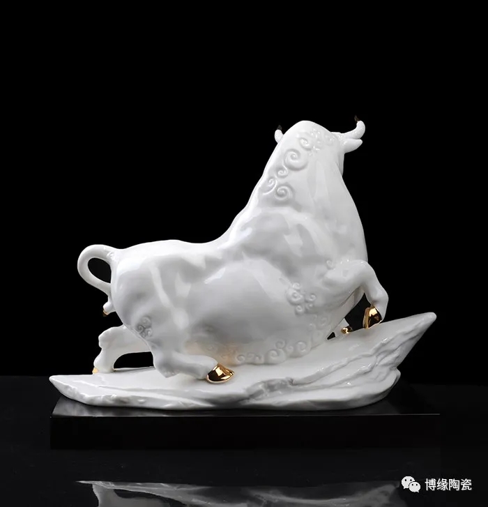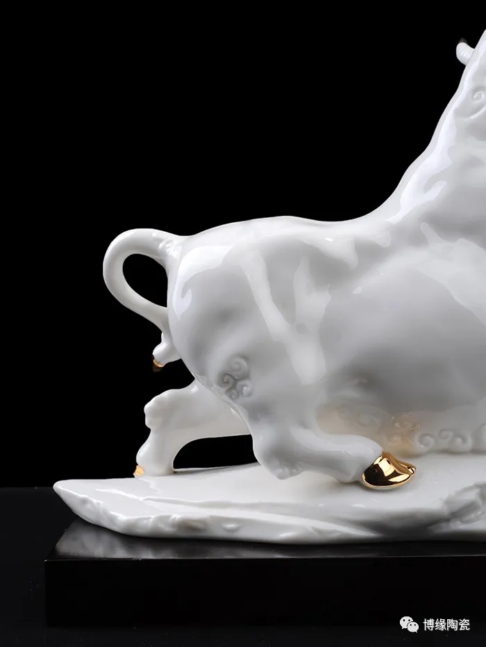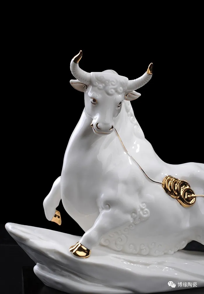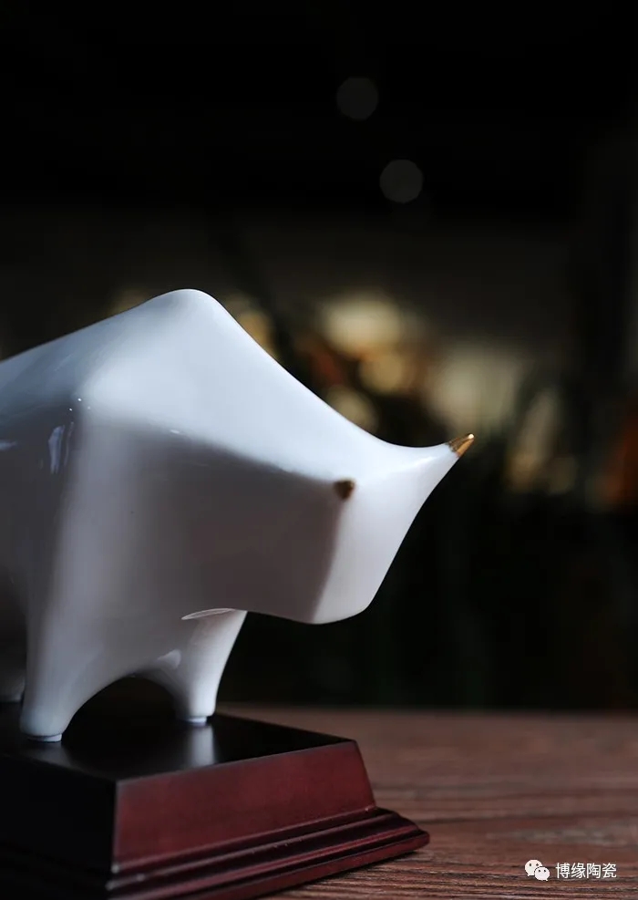 精細(xì)白瓷,描金工藝。勇猛又不失萌萌噠的牛造型!