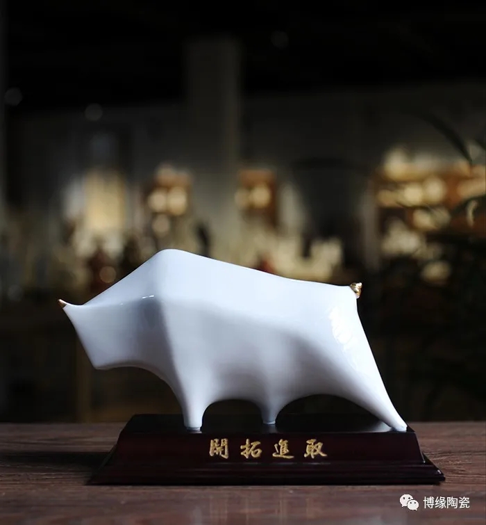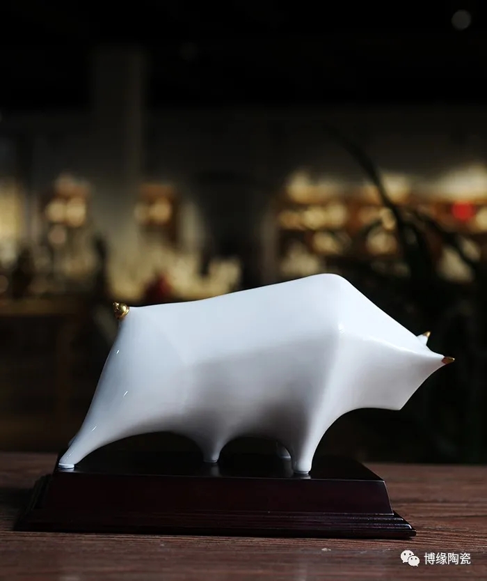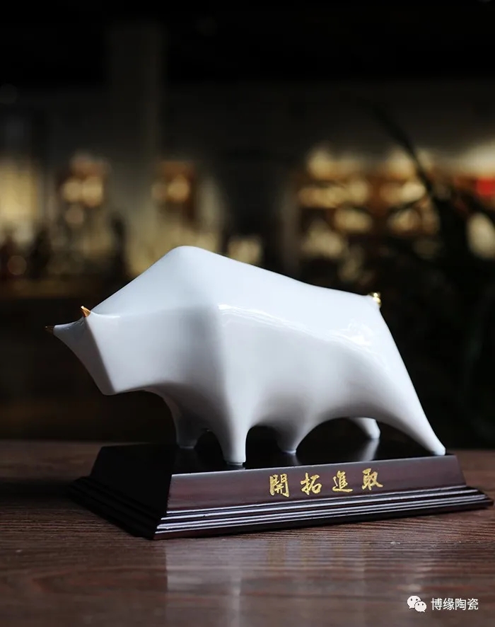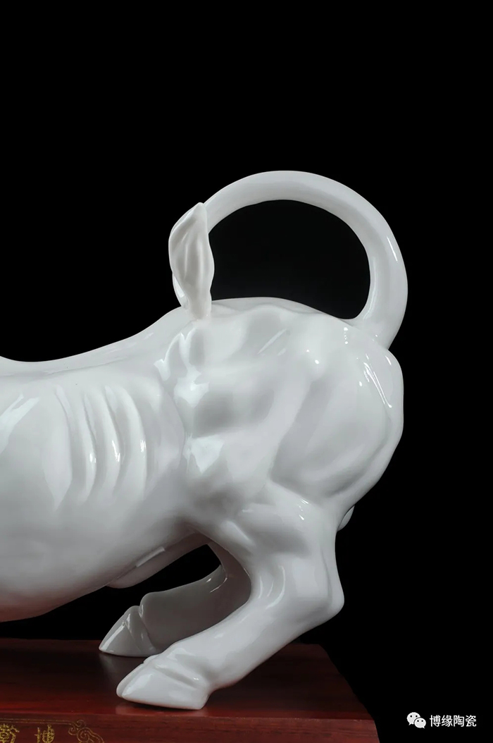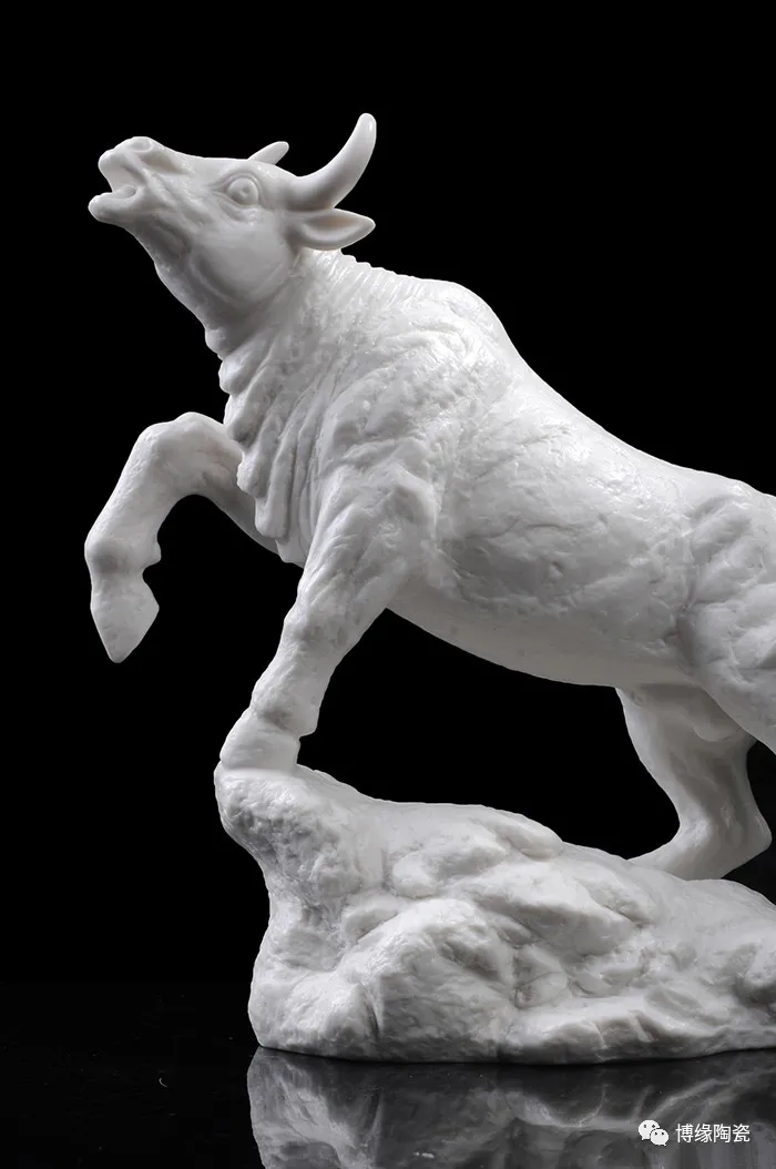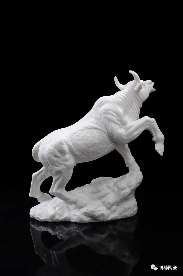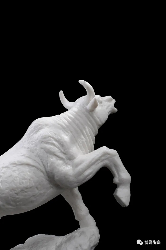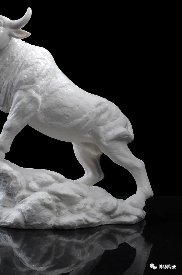精細(xì)白瓷,描金工藝。勇猛又不失萌萌噠的牛造型!