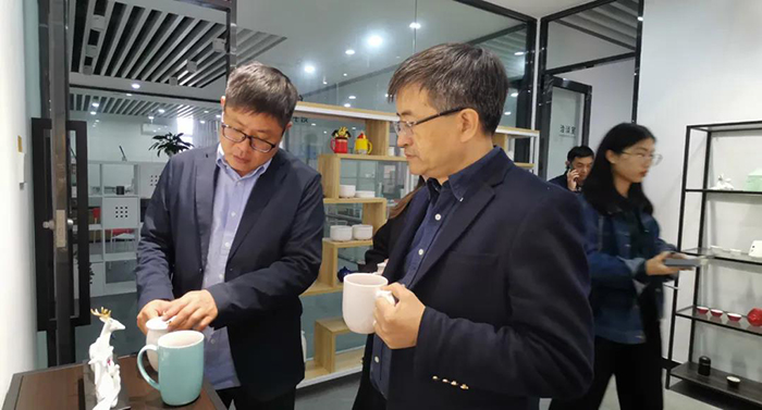 分享會結(jié)束后,孫教授參觀了研究院產(chǎn)品展廳,并高度贊賞了以“浮茶映月”、“瓷愛一生”、“四季花瓣”為代表的一系列原創(chuàng)設(shè)計(jì)產(chǎn)品。