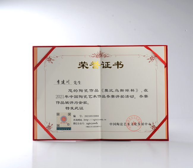 經(jīng)過20多年的學習和實踐在陶瓷藝術領域浸染,李建川在陶瓷創(chuàng)新設計、粗陶泥料研究創(chuàng)新、陶與瓷的結合、堆雕絕技、藝術繪畫等領域有較深造旨,并獲得多項外觀專利和版權專利。其設計創(chuàng)作作品多次品榮獲金獎,深受好評。