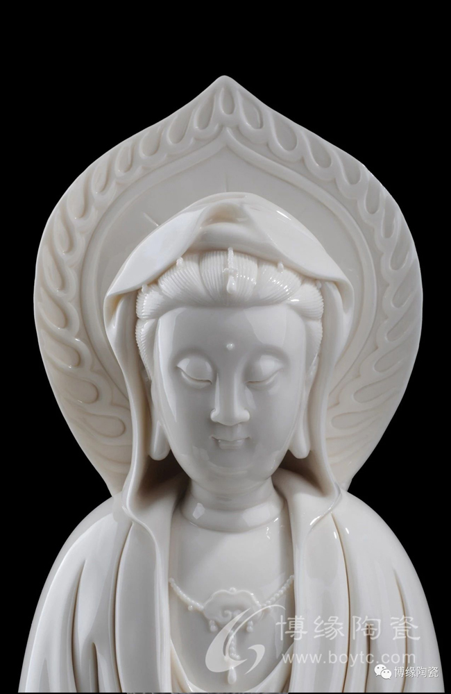 德化瓷器,以白瓷為最;白瓷之中,又以佛像為最。德化白瓷所塑佛像有性格鮮明、造型優(yōu)美、神態(tài)逼真、風(fēng)格洗練的特點。有一種單純的雕塑美和原材料的質(zhì)地美,最能體現(xiàn)佛教樸素、平和的思想。