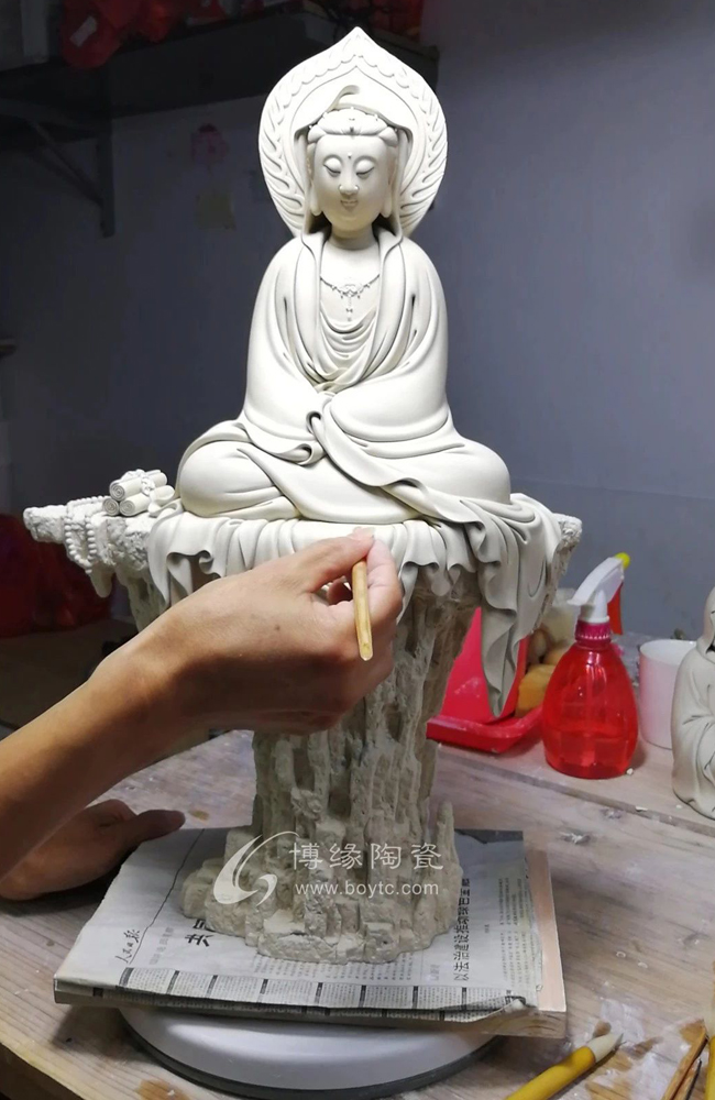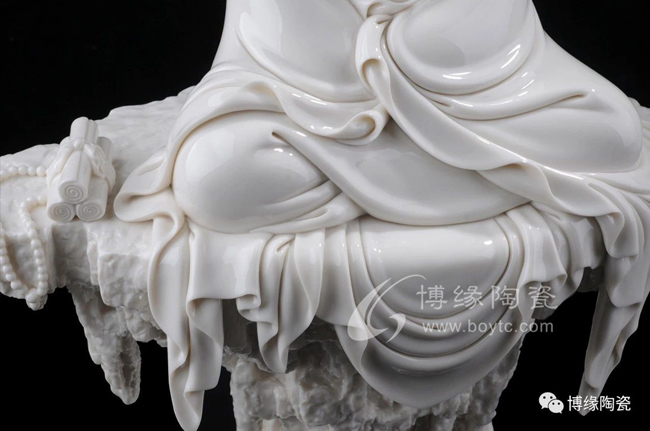 早在明代德化白瓷佛像就名聲在外,一代“瓷圣”何朝宗佛像名作流傳后世,成為世界各大博物館收藏的珍品,更對佛像雕塑史上產(chǎn)生深遠的影響,形成“何派”雕塑,其開創(chuàng)的捏、塑、雕、刻、刮、削、接、貼八字技法延用至今。