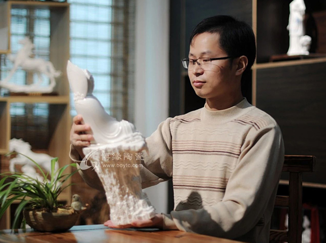 10多年潛心研習(xí)德化陶瓷文化,博采眾長,融會貫通,自成一格。2003年起從事設(shè)計工作,2006年創(chuàng)辦中華陶瓷網(wǎng)開始大量接觸陶瓷設(shè)計、開發(fā)、銷售,與眾多當(dāng)代德化陶瓷藝術(shù)家學(xué)習(xí)交流,多次到全國陶瓷產(chǎn)區(qū)了解陶瓷文化,組織參加50多場次展覽。2011年創(chuàng)辦福建省德化縣博緣陶瓷文化有限公司,專業(yè)事陶瓷設(shè)計、創(chuàng)作,主要作品有佛像、人物擺件、茶具等,所創(chuàng)作品多次榮獲國內(nèi)外金獎,深受好評。