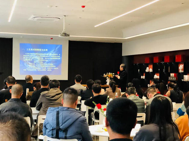 主講人余衛(wèi)平院長用自身的經(jīng)歷與獨到的見解,引領(lǐng)學(xué)員們回顧工藝美術(shù)歷史的發(fā)展,還介紹了工藝美術(shù)的發(fā)展現(xiàn)狀,從新石器時代到鴉片戰(zhàn)爭之后,工藝美術(shù)的發(fā)展經(jīng)歷了從簡到繁,從講究實用到設(shè)計精美,每個時代都有其不同的美學(xué)特征。