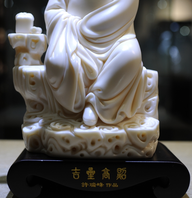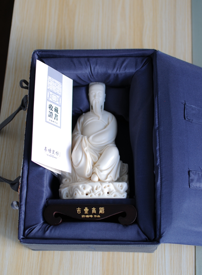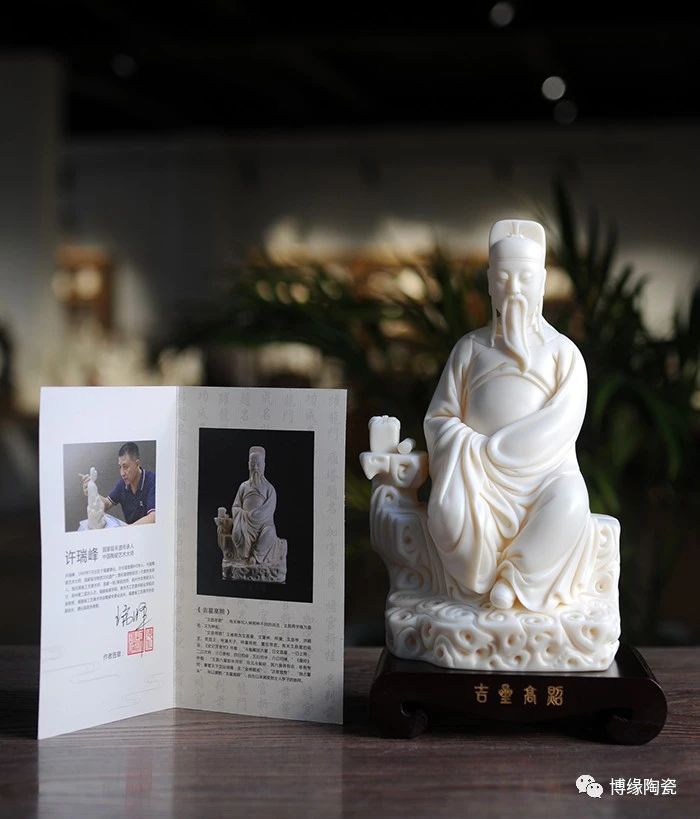 2.婚姻感情 文昌主一個人的溝通能力,若本身命中文昌不佳或受刑克等等,易造就此人個性上缺失,簡言之就是難溝通、情緒管理欠佳,嚴重者會言行舉止粗暴,這就造就了很多感情中相處不良最終以離婚或分手收場。 另外,感情世界里哪種人比較受異性青睞?當然是長相氣質(zhì)行為舉止優(yōu)雅者。若命中文昌佳,處世圓融人緣好且貴人多,自然也較受異性喜愛。所以在求月老來助姻緣時,有曾想過先去求文昌帝君,或是加強本身命中的文昌嗎? 3.在財運上 求財運拜財神是每個人都愛做的事,卻忽略了文昌對生意事業(yè)上的重要特性。社會上是一連串的人際周旋應(yīng)對,為人處事圓融者自然會得到更多人脈資源,更多貴人來助或雪中送炭。忽略文昌只求財神,難免落入生意永遠只做一次,這要如何飛黃騰達,永續(xù)發(fā)展呢? 4.在工作上 上班族雖不做生意,但最注重的就是升官升遷。文昌主功名祿位,就現(xiàn)代社會而言,在職場中,不管是公務(wù)員還是從事藝術(shù)、工程、教育、銀行等各種行業(yè)的人,都可以禮拜文昌帝君,以求廣開云路、工作順利、文運官運步步高升、事業(yè)有成、福德增崇。 中國陶瓷藝術(shù)大師許瑞峰《吉星高照》 長寬高:13.5x8.5x27(含底座3cm) 德化是“中國白的故鄉(xiāng)”,在世界瓷壇獨樹一幟,被稱為“世界白瓷之母”。在國際上有"東方藝術(shù)"之聲譽。德化白瓷,精選高嶺土5萬一噸,因其產(chǎn)品制作精細,質(zhì)地堅密,晶瑩如玉,釉面滋潤似脂,故有"象牙白"、"豬油白"、"鵝絨白"等美稱,素有“世界白瓷看中國,中國白瓷看德化”之稱。 文昌帝君,又稱更生永命天尊,是中國民間和道教尊奉的掌管士人功名祿位之神。文昌即文昌星,古時認為是主持文運功名的星宿。 許瑞峰大師在繼承德化歷代瓷塑技藝尤其是家族傳統(tǒng)技法的基礎(chǔ)上;在“瓷圣”何朝宗的寫意概括與“山湖祖”許氏家傳技法之間找到了平衡點,創(chuàng)造出“許氏瓷塑”藝術(shù)風(fēng)格。 文昌帝君和藹慈祥即體現(xiàn)德化優(yōu)秀的傳統(tǒng)技法又融入許家家傳的“山湖祖”精雕細刻的創(chuàng)作手法。作品采用德化優(yōu)質(zhì)中國白瓷土,經(jīng)1300多度高溫?zé)贫?br /> 德化瓷器,以白瓷為最;白瓷之中,又以佛像為最。德化白瓷所塑佛像有性格鮮明、造型優(yōu)美、神態(tài)逼真、風(fēng)格洗練的特點。有一種單純的雕塑美和原材料的質(zhì)地美,最能體現(xiàn)佛教樸素、平和的思想。 文昌作品雕刻精細,線條流暢。 作品瓷質(zhì)細膩,溫潤似玉 許瑞峰大師匠心制作,文昌坐于巖石之上,巖石紋路雕刻精細,生動。 作品背部落有許瑞峰個人印章,德化印章,具有很高的收藏價值 收藏證書: 作者親筆簽名收藏證書,具有很高的收藏價值