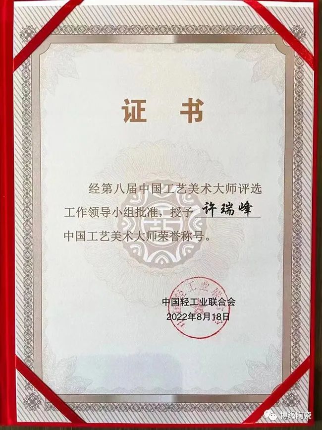中國工藝美術(shù)大師——許瑞峰 非物質(zhì)文化遺產(chǎn)(德化瓷燒制技藝)國家級傳承人 享受國務(wù)院特殊津貼