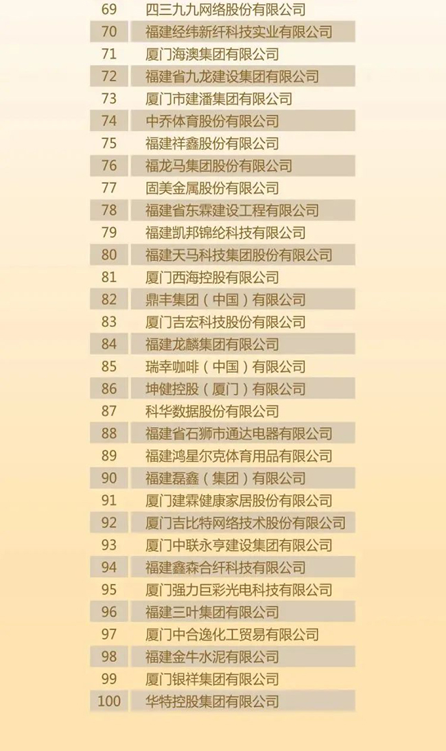 這是福建省工商聯(lián)連續(xù)第5年發(fā)布福建省民營企業(yè)100強榜單。