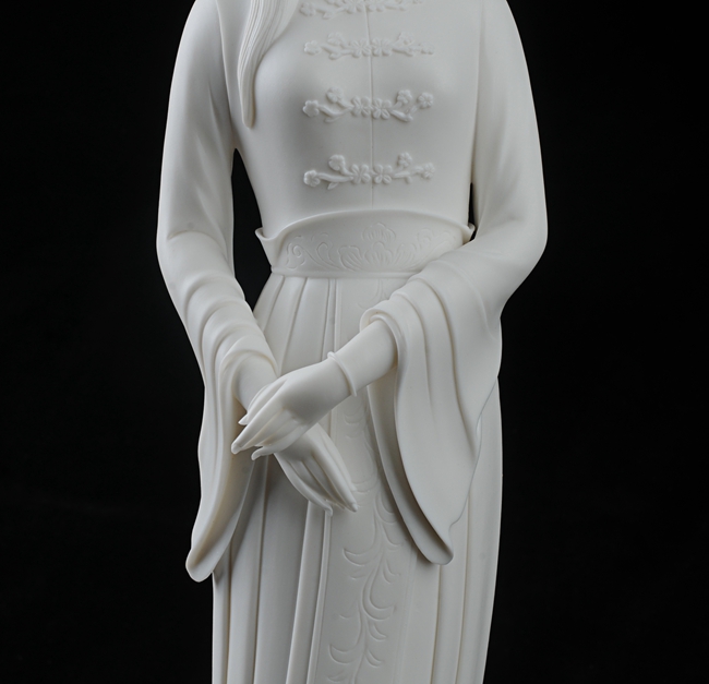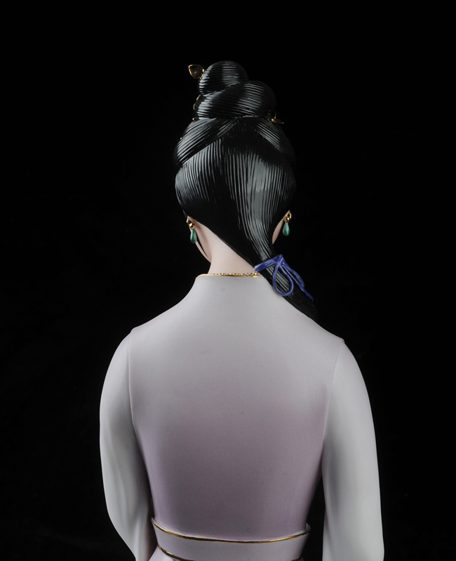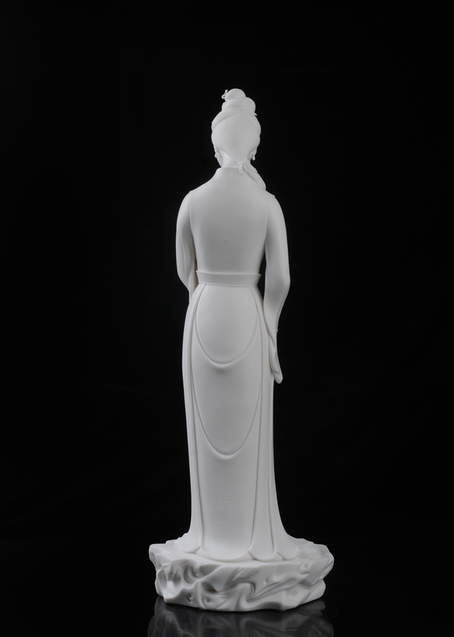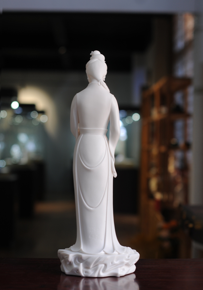 《漢風(fēng)》由中國(guó)傳統(tǒng)工藝美術(shù)大師林玉芬設(shè)計(jì)創(chuàng)作。作品以德化溫潤(rùn)如玉的“中國(guó)白”為胎質(zhì),經(jīng)1300多度高溫?zé),胎體通透,溫潤(rùn)如玉,瓷感細(xì)膩。作品只見(jiàn)美人雙眸微垂,體態(tài)優(yōu)雅,雙手交叉輕輕擺放,溫柔可人,作品動(dòng)靜相生,栩栩如生,技藝傳承,頭飾、服飾、衣飾,裙擺飄逸生動(dòng),質(zhì)感強(qiáng)烈,精心塑造,所到之處無(wú)不精細(xì)贊嘆,足見(jiàn)大師在創(chuàng)作時(shí)的獨(dú)運(yùn)匠心,作品背面有中國(guó)傳統(tǒng)工藝美術(shù)大師林玉芬親筆刻簽及落款,是一件不可多得的收藏精品。是辦公、家居、書(shū)房裝飾擺設(shè)、禮贈(zèng)、收藏的好選擇。