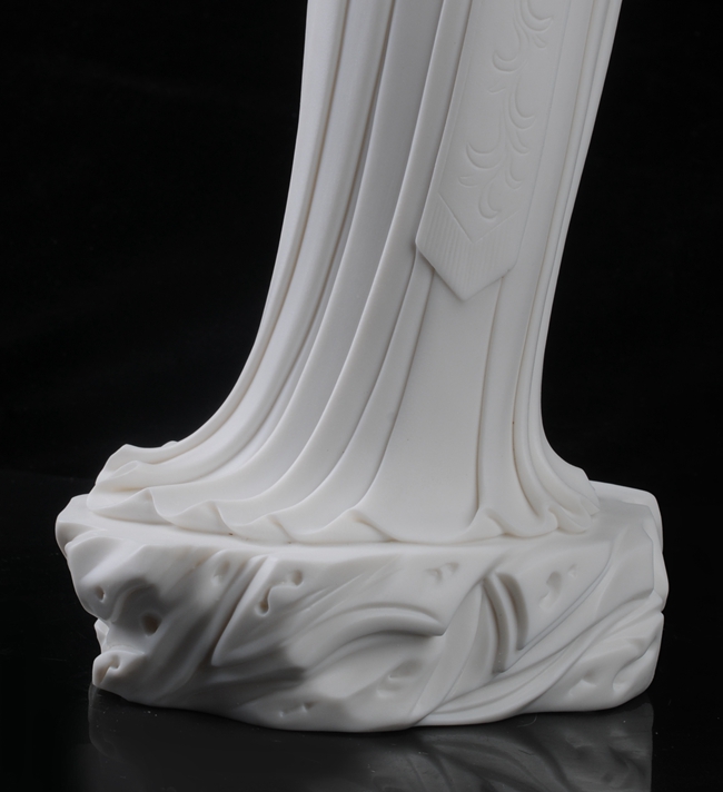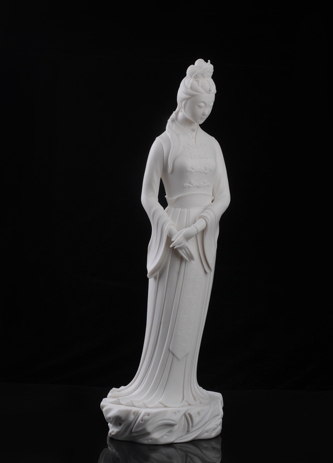 而今德化陶瓷觀音作品,在繼承前人優(yōu)秀技法和何派風(fēng)格的同時(shí),不斷創(chuàng)新發(fā)展,賦予作品新的現(xiàn)代生活氣息,使題材更加豐富。從主體造型設(shè)計(jì)、表情刻畫(huà)、衣服處理到局部裝飾的完成,體現(xiàn)出其精湛的雕刻技巧和高超的文化造詣,表現(xiàn)出德化瓷器的獨(dú)特風(fēng)格。使得德化瓷器世代相傳,綿延興盛。