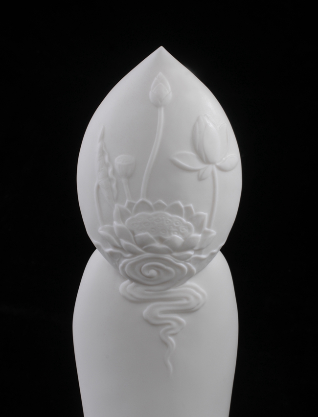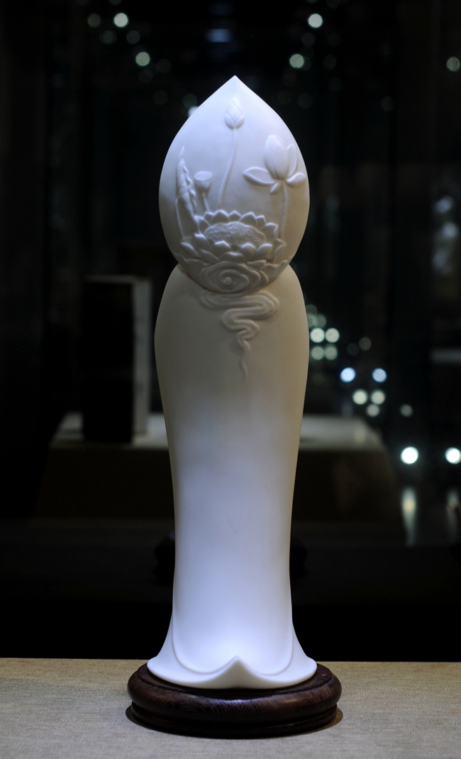 作品沿用德化傳統(tǒng)的制瓷技法,捏、塑、雕、鏤、貼、接、推、修