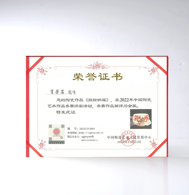 2022年《招財(cái)納福》榮獲北京陶瓷藝術(shù)名家作品展金獎(jiǎng)