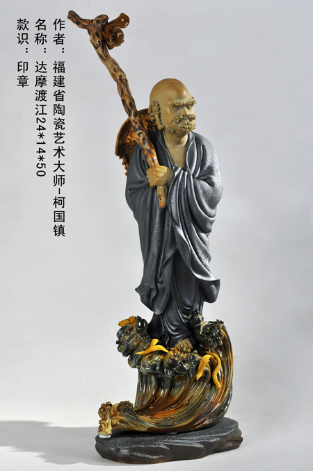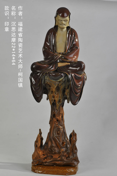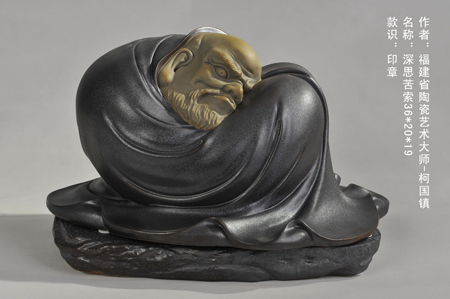 柯國鎮(zhèn),1967年出生于瓷都德化,師從國家級陶瓷藝術大師柯宏榮、陳桂玉夫婦,學習傳統(tǒng)陶瓷雕塑創(chuàng)作,掌握并能巧妙運用各種技術。其作品造型粗獷中見精細,構思出奇制勝,用簡單的藝術手法追求一種自然美和抽象美。