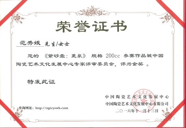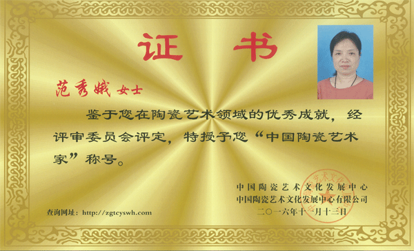2016年經(jīng)中國陶瓷藝術(shù)文化發(fā)展中心評(píng)審委評(píng)定為“中國陶瓷藝術(shù)家”。 |