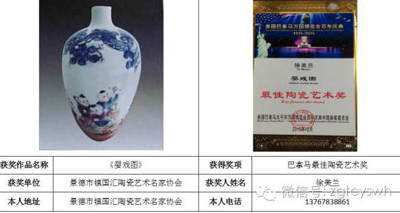 作品細(xì)膩蘊(yùn)含古樸與淡雅,大氣中透,清秀,其代表作《富貴吉祥》,《山水》等作品多次獲獎(jiǎng)及省市博物館收藏,被譽(yù)為最具收藏潛力的青年女畫家。 作品《嬰戲圖》榮獲2015年美國(guó)巴拿馬萬(wàn)國(guó)博覽會(huì)百年慶典(1915--2015)最佳陶瓷藝術(shù)獎(jiǎng)。 作品《富貴吉祥》榮獲2016年中國(guó)國(guó)際(北京)陶瓷藝術(shù)名家精品展經(jīng)中國(guó)陶瓷藝術(shù)文化發(fā)展中心評(píng)審委員會(huì)評(píng)定為“金獎(jiǎng)”。 2016年經(jīng)中國(guó)陶瓷藝術(shù)文化發(fā)展中心評(píng)審委員會(huì)評(píng)定為“中國(guó)青年陶瓷藝術(shù)家”。