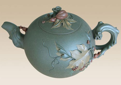 松鼠葡萄壺(壺身上有小雞,國(guó)務(wù)院臺(tái)辦贈(zèng)送連戰(zhàn)、宋楚瑜主席特別禮品)