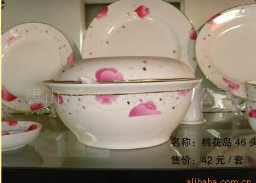 高檔骨質(zhì)瓷46頭中餐具---桃花島