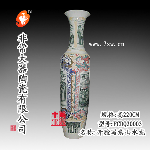 公司級(jí)禮品 岷天大花瓶 送禮上檔次 收禮有面子 三點(diǎn)六萬 全國(guó)包運(yùn) 【岷 天】:中國(guó) 大花瓶 第一品牌 【非常大器】:中國(guó)首家大花瓶專營(yíng)公司 中國(guó)專業(yè)大花瓶定制機(jī)構(gòu) 【名 稱】:岷天大花瓶 民窯精品 民間藝術(shù)品 【型 號(hào)】:岷天大花瓶標(biāo)準(zhǔn)規(guī)格為高1.8米\2.2米\3米\3.5米 (其中廳堂高度5米以下適用1.8米與2.2米高花瓶,廳堂高度5米以上適合用3米與3.5米大花瓶) 【價(jià) 格】:2011年價(jià)格,三米高3.6萬元一對(duì)、二米二高1.8萬一對(duì)、一米八高1.2萬元一對(duì)。 【鄭重承諾】:全國(guó)包運(yùn)、破損包賠。 【定購(gòu)流程】:您通過電話或者網(wǎng)絡(luò)確定訂單,其余事情都由我公司負(fù)責(zé),將在五天左右將大花瓶安全高效運(yùn)到客戶指定城市。 【產(chǎn)品特點(diǎn)】:岷天大花瓶為景德鎮(zhèn)非常大器陶瓷有限公司出品的頂級(jí)禮品瓷器,適應(yīng)大場(chǎng)所,大場(chǎng)面。從顏色方面、造型方面都搭配非常協(xié)調(diào)。從檔次上考慮,花瓶為民間藝術(shù)家手工繪畫,手工制作,包括胚胎都是非?季康,而且如此有氣勢(shì)、紀(jì)念意義強(qiáng)烈的花瓶,做為禮品是非常珍貴的。是政府之間、公司之間、客戶之間、朋友之間禮尚往來的見證,是往來嘉賓關(guān)注的焦點(diǎn),特點(diǎn)就在于它的大氣、美觀,珍貴,保存時(shí)間長(zhǎng),吸引眼球,欣賞率高,讓大家都會(huì)記得您的大禮! 【送禮范圍】:岷天大花瓶多用于大廳、門廳、客廳等廳堂擺設(shè),主要用于、政務(wù)禮品、商務(wù)禮品、紀(jì)念禮品,開業(yè)禮品。用于建筑落成、工程竣工開業(yè)、奠基典禮、酒店賓館陳設(shè)、企事業(yè)單位喬遷、周年紀(jì)念 、學(xué)校校慶、搬遷新居等。 【特殊訂制】:有特殊需要,在大花瓶身上可燒制LOGO、公司名稱、人名、贈(zèng)言,紀(jì)念用語,年月日等。 【產(chǎn) 地】:中國(guó)景德鎮(zhèn)。 【包 裝】: 加固安全木架包裝。 【運(yùn) 輸】:國(guó)內(nèi)采用公路物流運(yùn)費(fèi),五天左右到達(dá),我們有專業(yè)物流發(fā)貨基地,確保貨物安全、高效地到達(dá)客戶手中! 岷天大花瓶幾大吉祥寓意 【諸事平安】 花瓶類瓷器,極易破損,只有在太平和睦環(huán)境中才能保全,古人說家有花瓶人安樂,廳堂中擺放大花瓶,是萬事平安的像征。 【富貴滿堂】 自古以來,大件瓷器罕有,只有皇親貴族、達(dá)官顯貴家才有擺設(shè),廳堂擺放大花瓶,是官運(yùn)亨通,富貴滿堂的像征。 【財(cái)源廣進(jìn)】 大花瓶以山水類題材較多,水在中國(guó)就是財(cái)富的說法,廳堂擺放大花瓶,像征著財(cái)源廣進(jìn)。 【鎮(zhèn)宅之寶】 岷天大花瓶,由金(釉料顏料)+木(燒窯之木柴)+水(和泥拉坯造型)+火(燒制)+土(瓷土)五種元素制成,能彌補(bǔ)建筑或建筑內(nèi)的人員的五行不足,扶正驅(qū)邪,廳堂擺放大花瓶,起著鎮(zhèn)宅的作用。 【公司簡(jiǎn)介】景德鎮(zhèn)非常大器陶瓷有限公司,作為中國(guó)首家大花瓶專營(yíng)公司,是以設(shè)計(jì)、加工、定制陶瓷大花瓶專業(yè)機(jī)構(gòu),公司開發(fā)出岷天牌陶瓷大花瓶,1.8米系列\(zhòng)2.2米系列\(zhòng)3米系列\(zhòng)3.5米系列等標(biāo)準(zhǔn)尺寸大花瓶,工藝上采用青花\釉里紅\墨彩\粉彩\新彩\顏色釉\書法\雕刻等景德鎮(zhèn)民間傳統(tǒng)手工技藝制作,歡迎新老客戶商洽。 我們的宗旨:宏揚(yáng)景德鎮(zhèn)民間瓷器文化 我們的目標(biāo):打造中國(guó)大花瓶第一品牌。 我們的理念:真誠(chéng)維護(hù)客戶利益、真心關(guān)注員工成長(zhǎng)、真情回饋社會(huì)關(guān)愛。 |