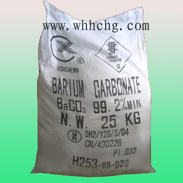碳酸鋇 分子式:BaCO3 分子量:197.35 產品性狀:本產品系無定形白色粉末,比重:4.43,熔點:1740℃(90大氣壓),1450℃分解失去二氧化碳,不溶于水,不溶于酒精,能溶于酸及氯化銨溶液?诜卸,進入胃內,溶于酸中變成可溶性的氯化鋇,故能發(fā)生中毒,系有毒品之一。 執(zhí)行標準: 項目 優(yōu)等品 一級品 合格品 含量(BaCO3)%≥ 99.2 99.0 98.5 水份%≤ 0.30 0.30 .050 鹽酸不溶物灼燒殘渣%≤ 0.15 0.25 0.50 總硫%≤ 0.20 0.30 0.40 鐵%≤ 0.004 0.004 0.008 細度:粉狀125μm試驗篩篩余物%≤ 0.20 0.30 .050 細度:粉狀850μm試驗篩篩余物%≤ 1 1 1 細度:粉狀150μm試驗篩篩余物%≥ 75 75 75 用途:化工行業(yè)及洗滌劑廠生產磷酸五鈉等產品用碳酸鋇脫硫。電鍍行業(yè)用以含鉻污水處理。玻璃行業(yè)中用于X光玻璃、注射藥瓶、燈泡、玻殼、玻梗等玻璃產品中,能使玻璃潔白、堅硬。用于高頻瓷,可增加瓷的潔白度。用以配制滲碳劑,改善中碳鋼材的結構。在陶瓷工業(yè)中,用作助熔劑。還可以用作凈水劑和殺鼠劑。 包裝規(guī)格: 用內襯塑料袋,外加塑料編織包裝,每袋凈重25公斤或50公斤。 |